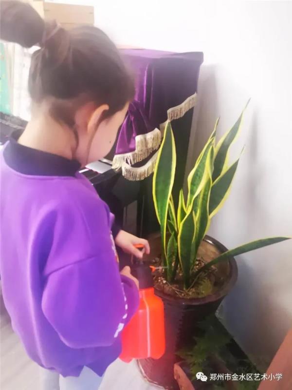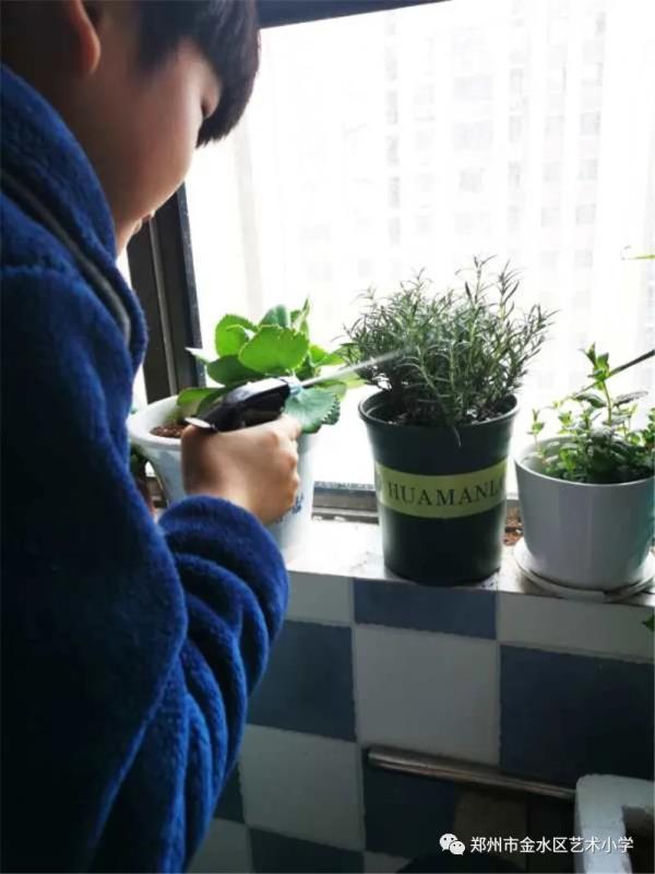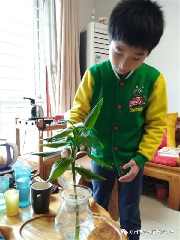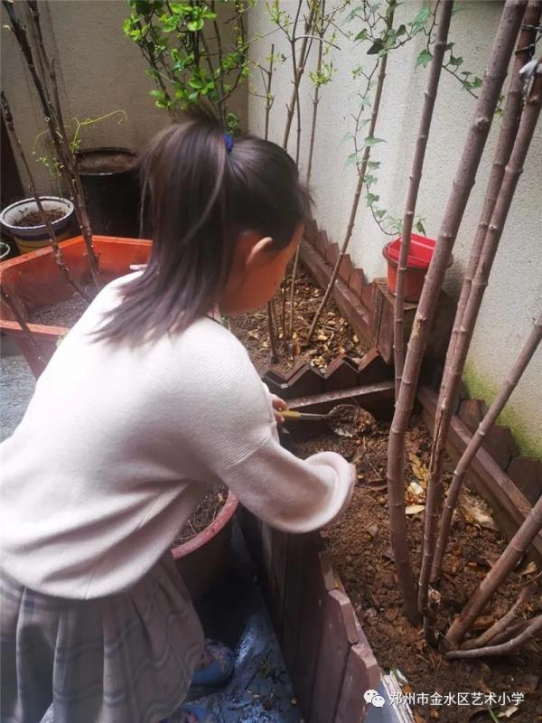 学校根据学生的不同年龄设计了不同形式的主题活动。低年级的学生以“爱心呵护”为主,开展了“我为绿植浇浇水”的活动,有的孩子小心翼翼生怕弄疼了植物朋友,有的孩子动作熟练,看来在家里经常会做这些事情。中年级的学生以动手实践为主,开展了“种植绿色我能行”的活动,有的种黄豆、黄生,有的种土豆、洋葱,还有的进行水养种植,每一个生命被学生精心照料,他们在种植中体会到生命的不易,更懂得珍惜。高年级的学生以“环境和谐”为主题,开展了“实验面面观”活动,学生通过动手实验发现植被对环境的保护作用,从而增强爱绿护绿、爱护环境的意识。