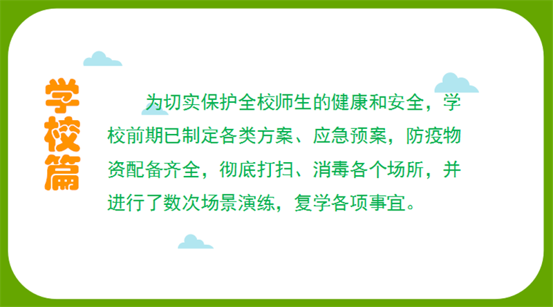 复学在即,一切的一切都是为了学生的健康,这是我们共同的心愿。期待5月11日,期待活力满满的学生,期待我们的生活早一日回归正常……