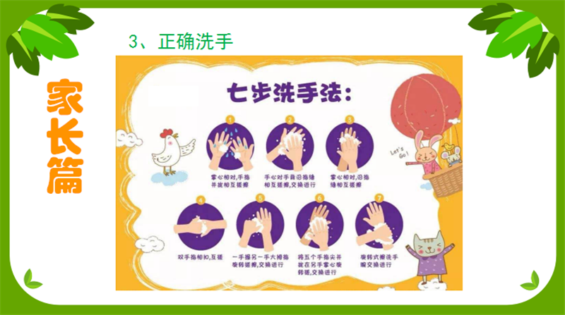 二、告知家长复学前需要配合、准备的相关事项。比如:帮助学生培养良好的卫生防疫习惯,出门要戴好口罩,饭前便后要学会“七步洗手法”;每日坚持上报学生的身体状况,如有异常及时联系班主任老师;每天为学生准备、更新安全防疫包等等。