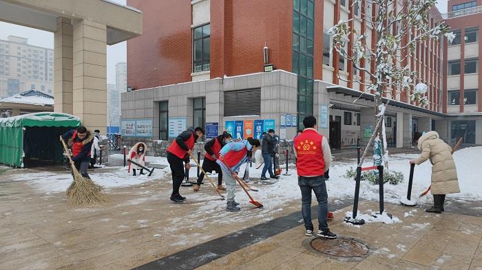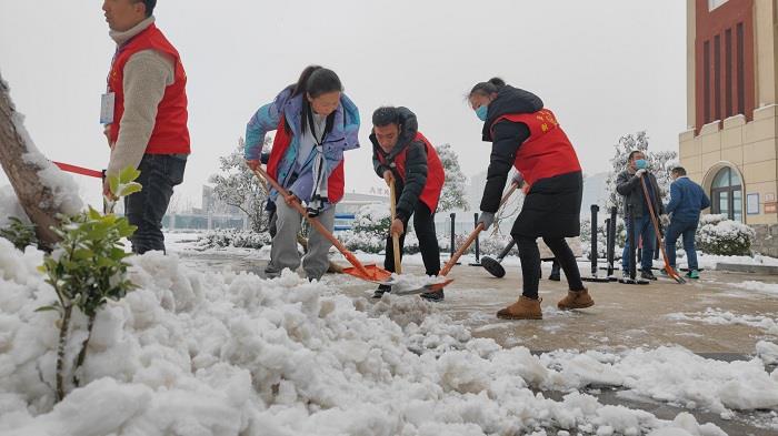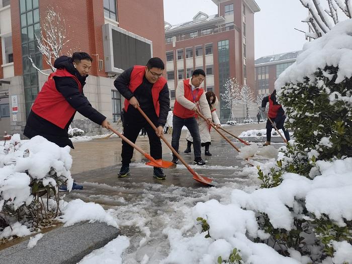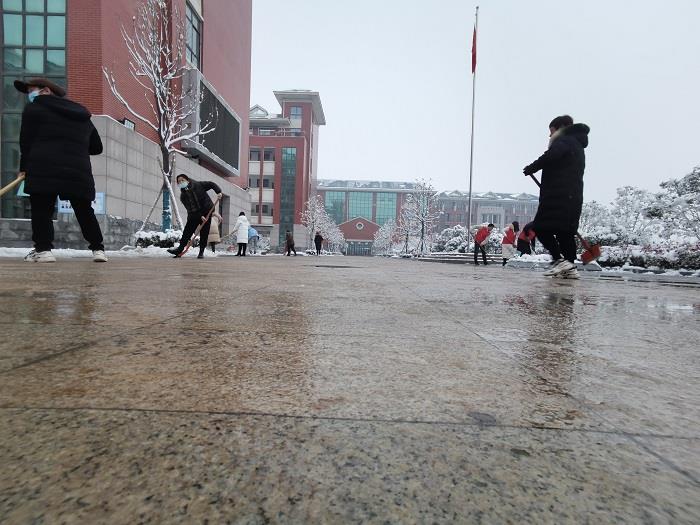 在大家的齐心协力下,很快就完成了除雪任务,既为科豆们明天的正式上课提供了安全方便的校园环境。也从侧面折射出老师们良好的精神面貌和奉献精神。也希望雪落疫散,一切皆安!