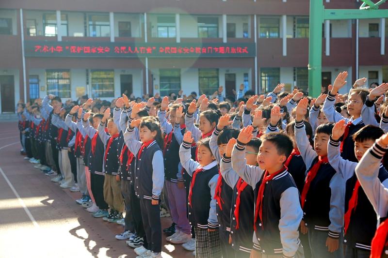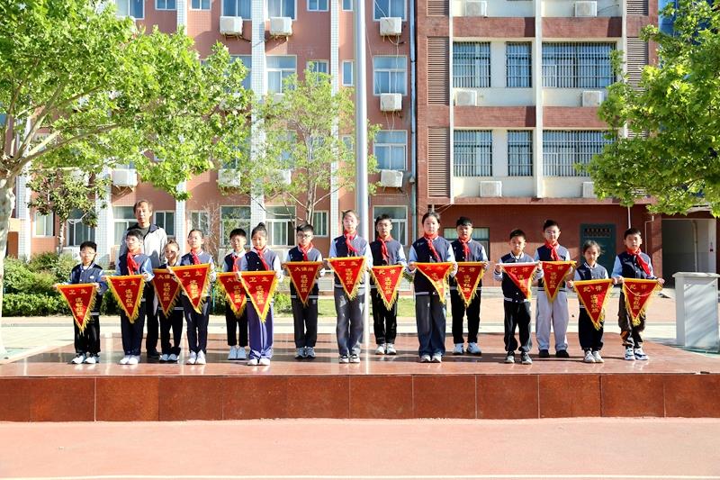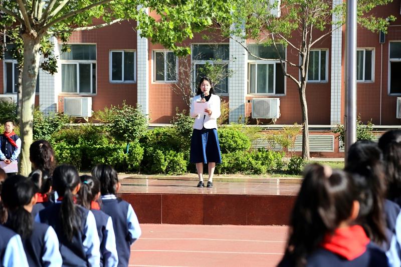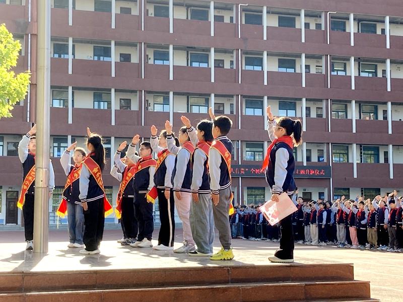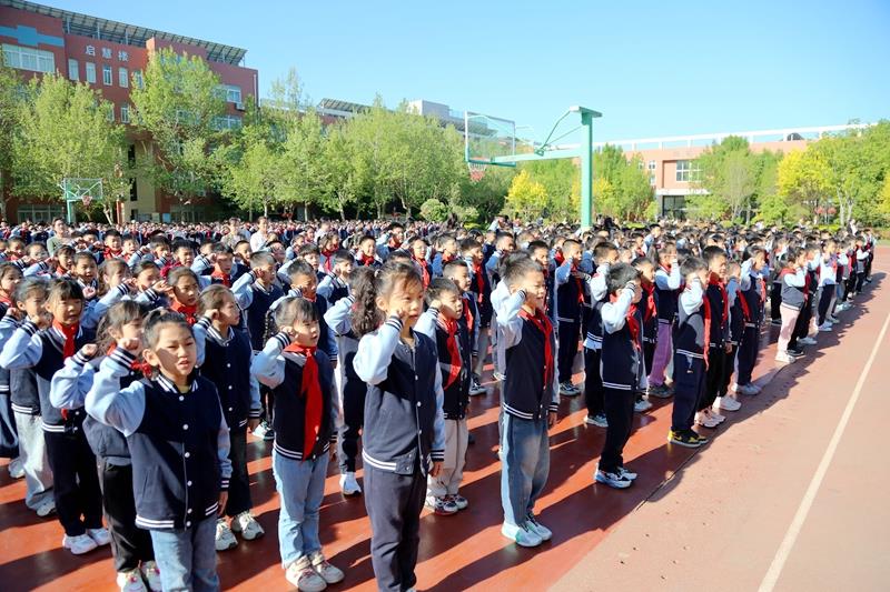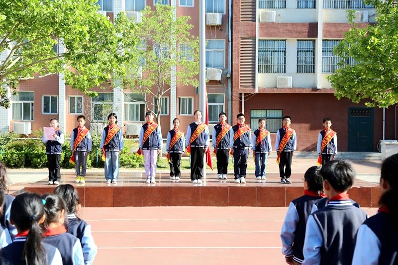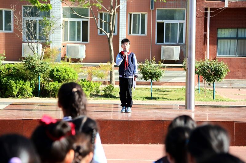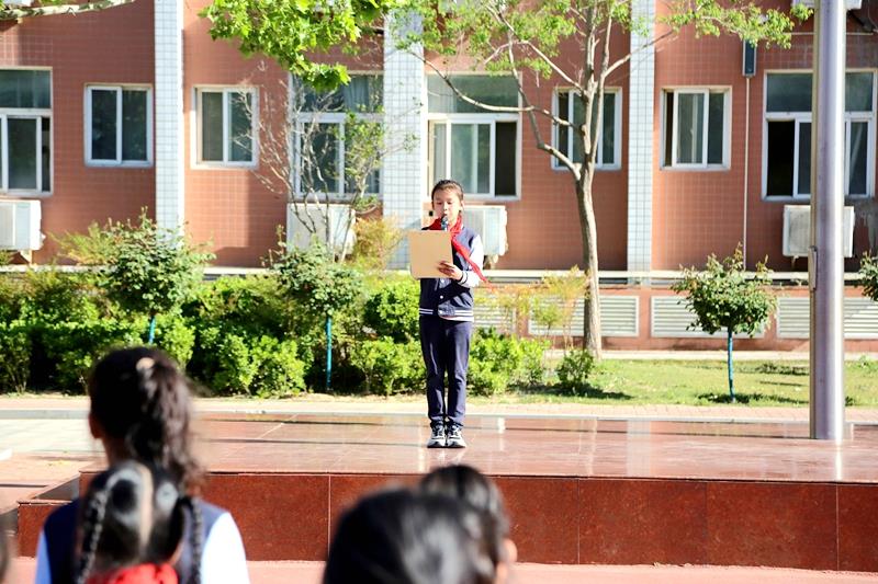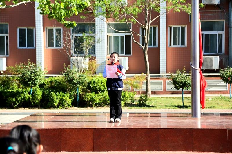 本次升旗仪式由五二中队学生代表唐诗语同学主持。伴随着雄壮激昂的《义勇军进行曲》,全体师生整齐列队、庄严肃立,注视着五星红旗冉冉升起,一同高唱国歌,鲜艳的五星红旗迎风飘扬,在晨光下熠熠生辉。