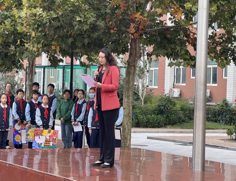 学校副书记郭莹为仪式致辞,她强调:作为一名新时代的少先队员,要好好学习、好好锻炼,学会做人、学会生存;要有一颗感恩之心,多为他人着想,多为集体着想,在少先队组织中加强历练,为胸前的红领巾增光添彩。