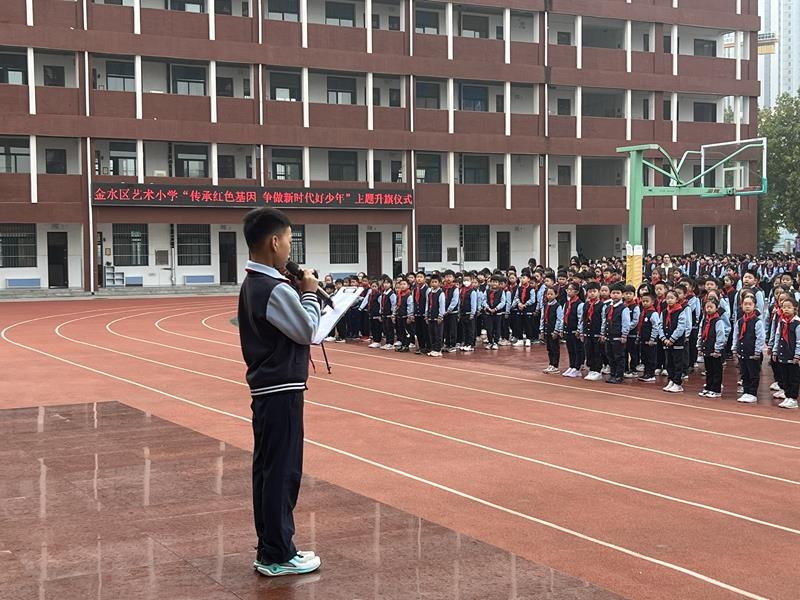 十月颂华夏,少年当自强。为坚定红色自信,继承红色文化,在红色基因的引领下走好新时代的长征路,引导广大少先队员继承和发扬少先队的光荣传统,增强少先队员的光荣感和责任感,在第74个中国少年先锋队建队日到来之际,10月9日上午,汇彩网举行“传承红色基因 争做新时代好少年”建队节主题升旗仪式。