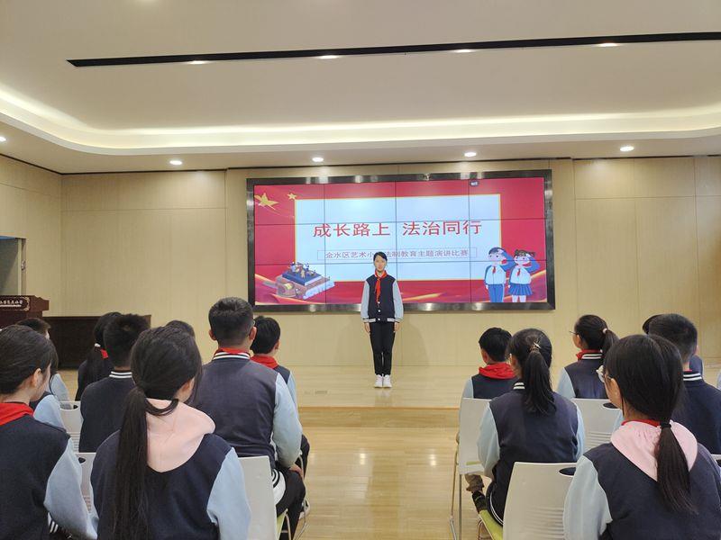 在“成长路上 法治同行”演讲比赛的活动现场,队员们紧紧围绕法律与国家、法律与个人、法律与社会等内容进行演讲,队员们尽情展示自己的才华,阐述了自己对法律法规的理解,讲述了自己遵纪守法的故事,深情抒发出对建设法治中国的美好愿景。