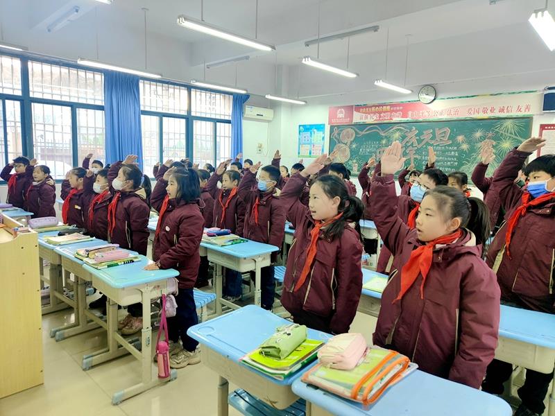 中队辅导员宋会丽老师发表讲话,她为全体师生送上诚挚的新年祝福,鼓励队员们以蓬勃的朝气和奋发的斗志来迎接崭新的一年,做到珍惜时间、奋发学习,为自己的理想去努力拼搏。