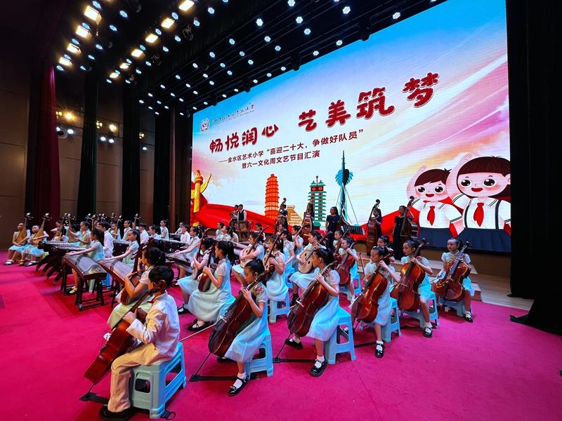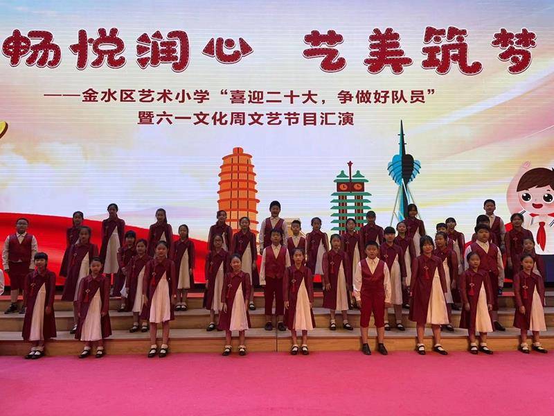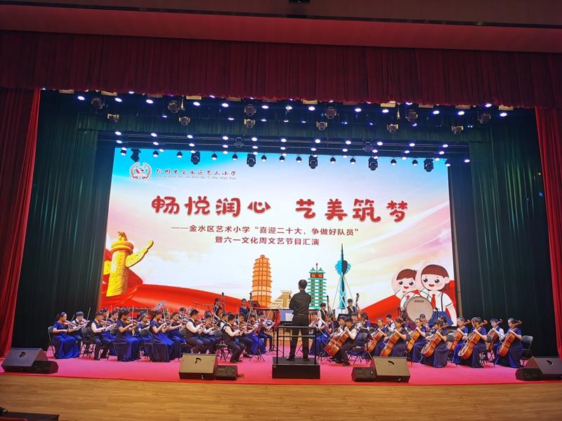 长笛重奏《编花篮》、弦乐合奏《蓝色多瑙河》、花球啦啦操《舞动》、声乐合唱《Count On It》、《地球大合唱》……一个个节目的展示,都是孩子们在用专业的艺术素养,演绎出精彩的瞬间;都是孩子们在以新时代少先队员特有的方式,抒发热爱党、热爱祖国的情感,并把美好的祝福献给党、献给祖国。