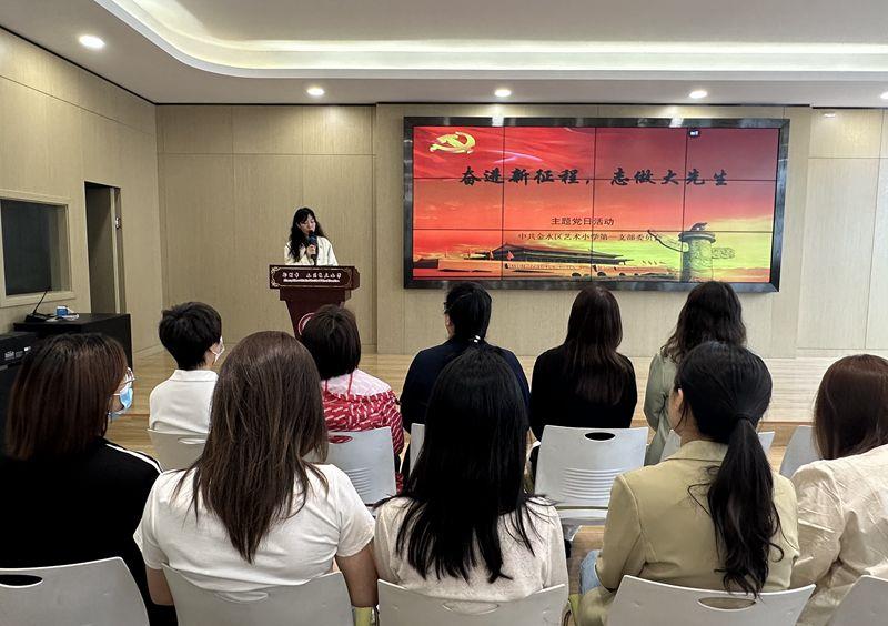最后,学校第一支部书记杨丽丽同志带领全体党员同志重温了入党誓词,并进行总结:希望党员教师忠诚党和人民的教育事业,坚守为党育人、为国育才的使命担当,认真履行教师神圣职责,真正成为有理想信念、有道德情操、有扎实学识、有仁爱之心的“四有”好老师,当好学生锤炼品格的引路人、学习知识的引路人、创新思维的引路人、奉献祖国的引路人,志做大先生。