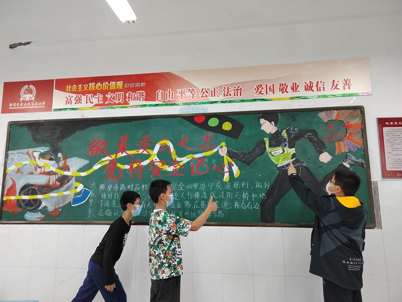 另外,学校在全校各班开展优秀主题黑板报评比,利用电子屏进行法治教育,在校园内营造出法治教育宣传的良好氛围。