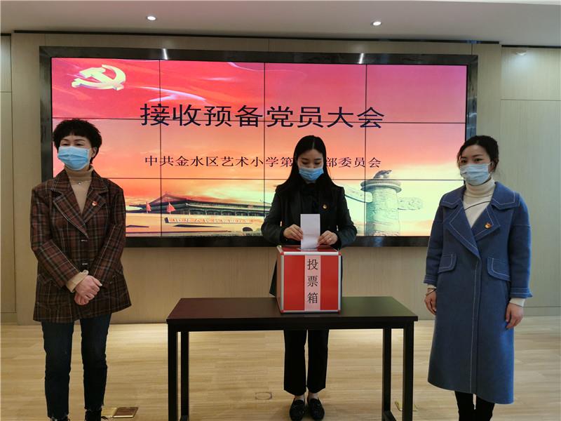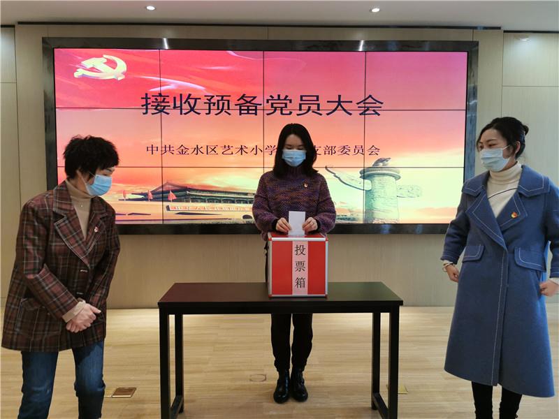 与会全体党员进行投票表决,监票人冯祥、张建芳全程监督,计票人李宝琛、姚媛清点所有投票,王瑶同志全票通过,同意接收其为中共预备党员。王瑶同志虚心听取大家的意见和建议,表明成为一名预备党员后,将不断学习,提升自我。
