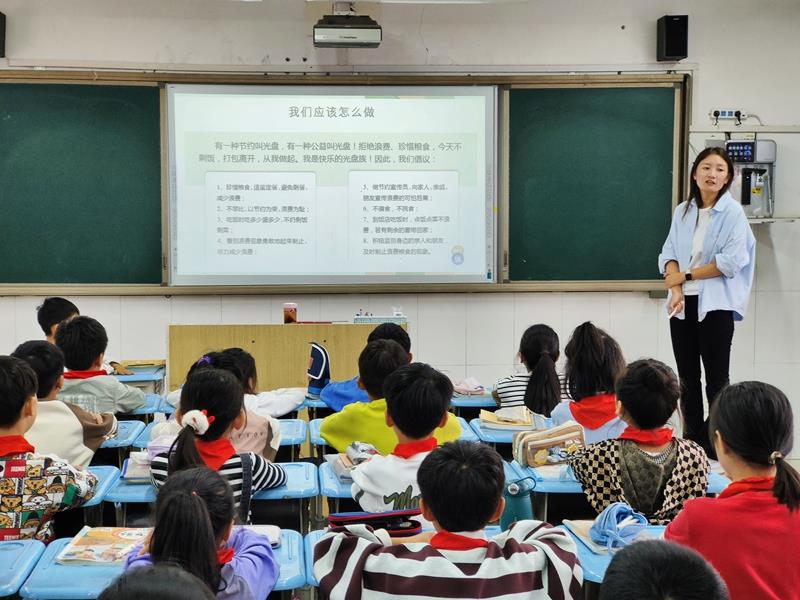 少先队活动课上,老师们首先通过图片、视频等多种形式,向同学们展示了粮食生产的过程,带领学生了解到每一粒粮食都来之不易。从播种到收获,农民们付出了辛勤的汗水,同时也经历了等待粮食成长的过程。同学们深刻感受到粮食的珍贵,纷纷表示要珍惜每一粒粮食。接着,老师们讲述了一些节约粮食的小妙招,如适量点餐、光盘行动、不挑食不浪费等,同学们也积极发言,分享自己在生活中节约粮食的经验,并承诺:要在今后的学习和生活中,从我做起,从小事做起,与勤俭为伍,和节约相伴,杜绝浪费,做节粮爱粮的小卫士,做粮食安全的宣传员。