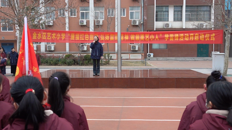 中队辅导员代表张高霞老师向全体少先队员发出倡议:希望同学们以雷锋为榜样,发扬无私奉献、乐于助人的精神,积极参与到“学雷锋”活动中来,不仅是在“雷锋日”,更要时时刻刻将雷锋精神牢记在心,把雷锋精神付诸行动。最后,由学校德育处主任海霞宣布活动月正式启动。