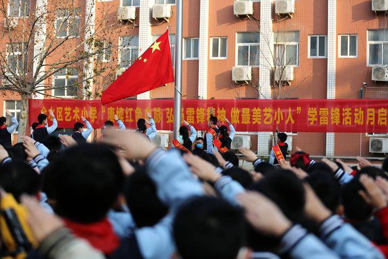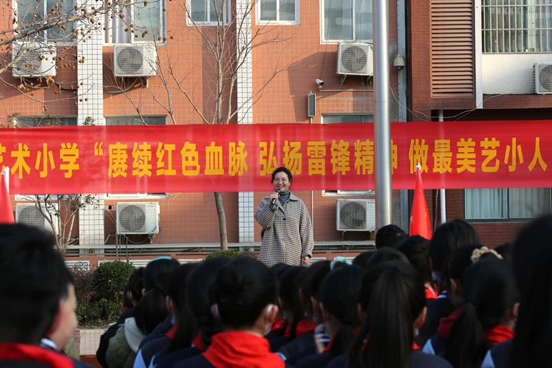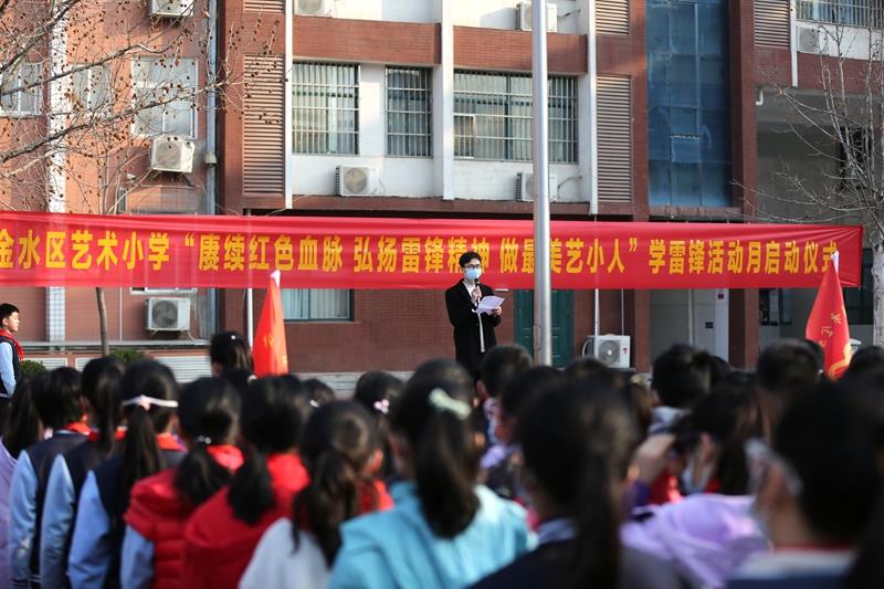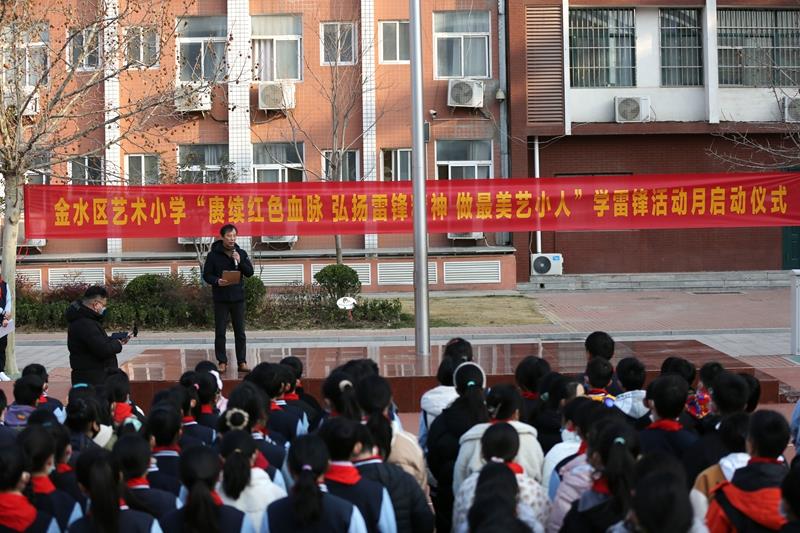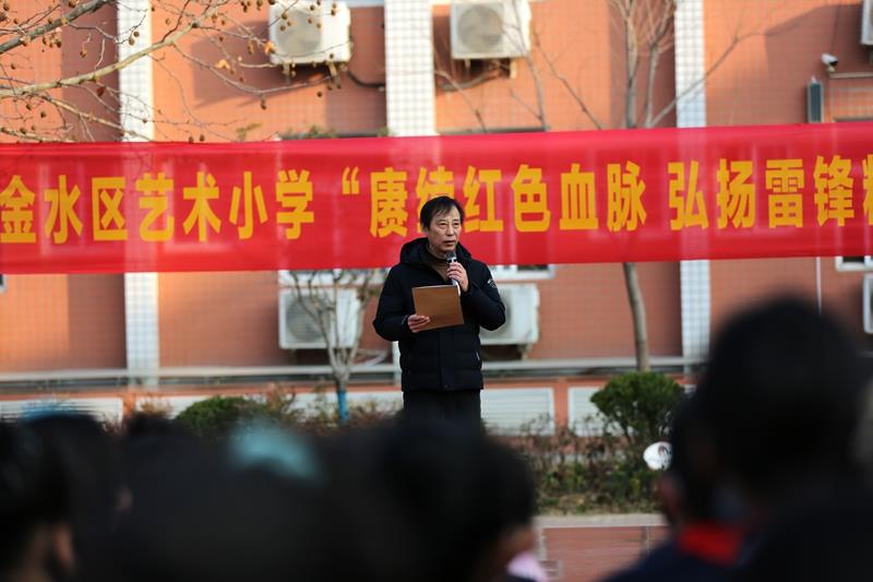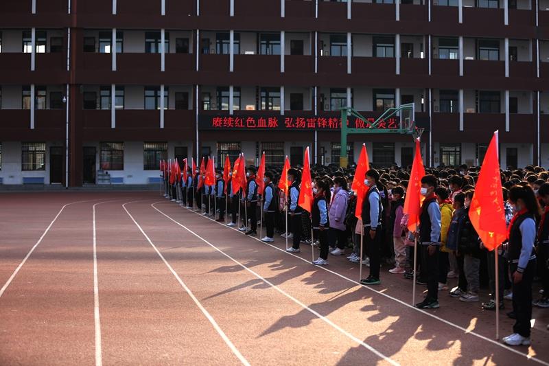 伴随着雄壮的国歌,活动在庄严的升旗仪式中拉开帷幕!五星红旗在蓝天白云的映衬下显得格外鲜艳,就像雷锋精神一样永不褪色。学校党总支书记、校长赵纪军为活动致辞,希望同学们从现在做起,从小事做起,像雷锋那样学习和生活;希望全体教职工用雷锋精神治校育人,塑造灵魂,帮助学生在充满文明和关爱的校园环境中健康成长,更好地成人、成才。