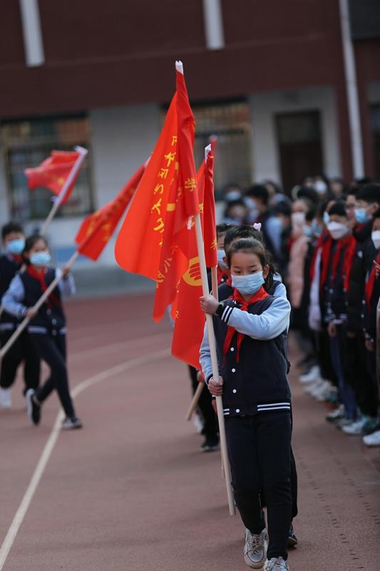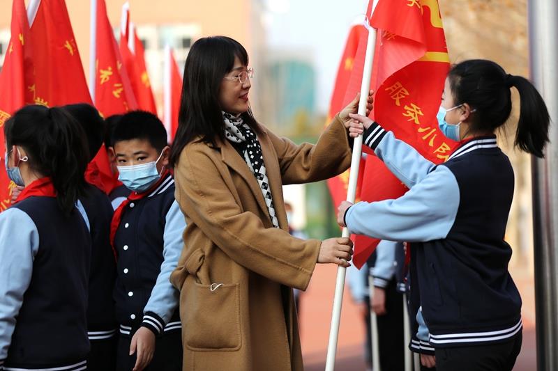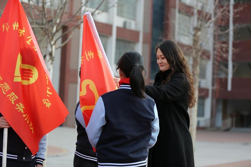 学校党支部副书记郭莹、副校长杨丽丽为学校各中队授队旗。一面面鲜艳的队旗迎风招展,星星火炬在雷锋精神的指引下闪闪发光。相信全校少先队员们都能从生活中的点点滴滴做起,用实际行动诠释雷锋精神的内涵,将雷锋精神发扬光大!
