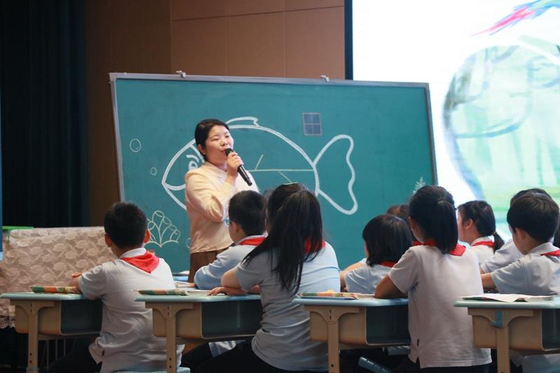 本次活动分为课例展示、经验分享和教研员点评三部分。首先,宏康校区三年级朱琼睿老师展示课例《海底世界》。朱教师紧扣单元语文要素及学习目标,带领学生一起探索海底世界的奥秘。课堂上,朱老师以生为本,注重每一位学生的学习体验及发展,通过创设不同的情景,对比、分析关键词句引导学生自己去发现海底的宁静、声音、动物活动、植物差异以及海底的物产丰富。整节课结合“抓关键词句设计学习任务”的主题,将语文核心素养的培育,落到了实处。