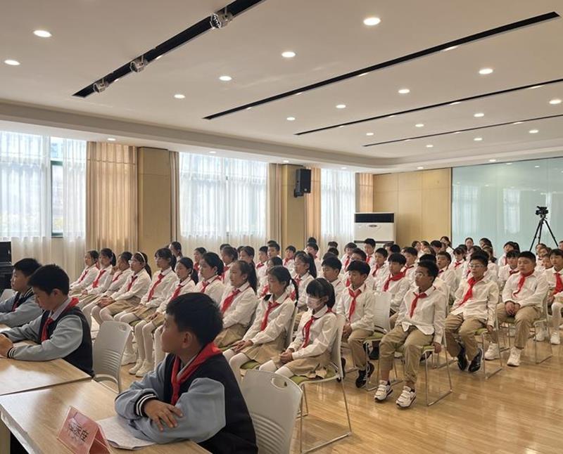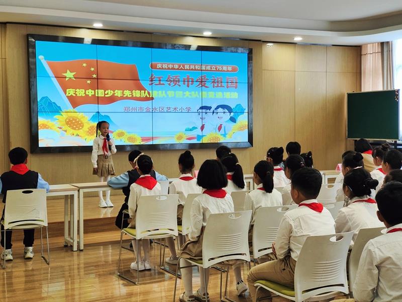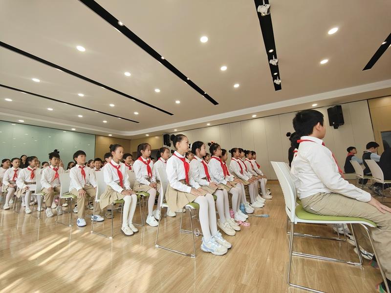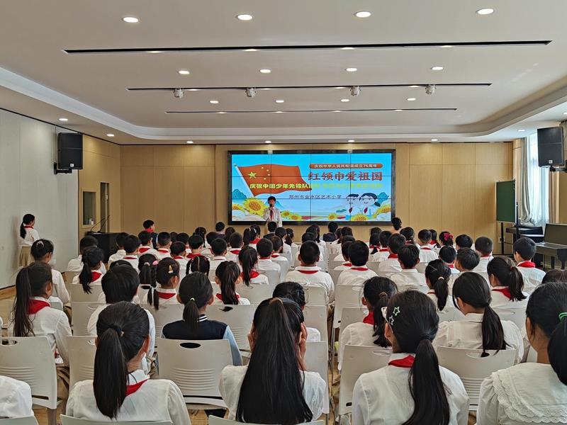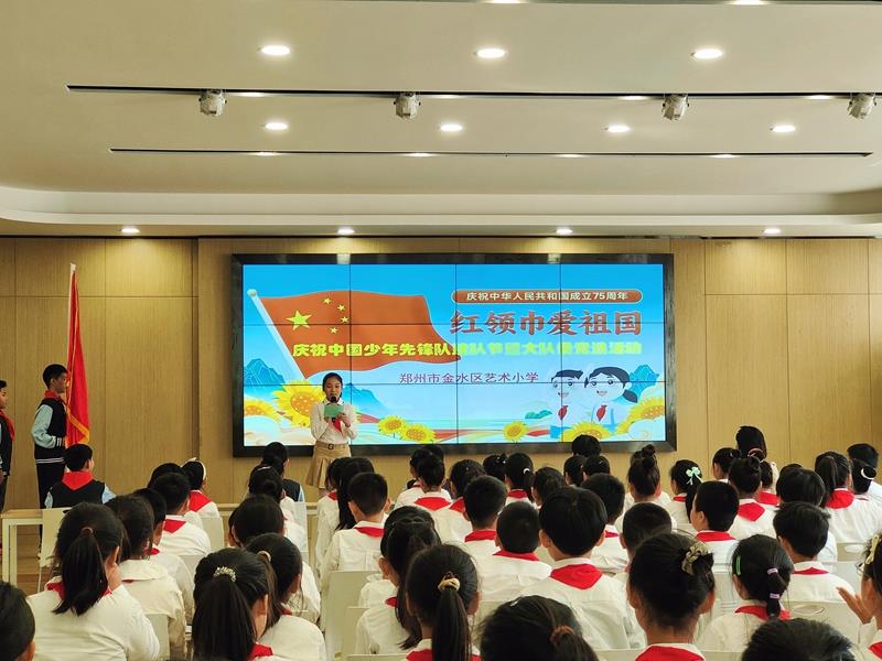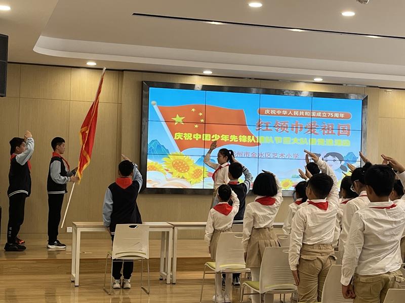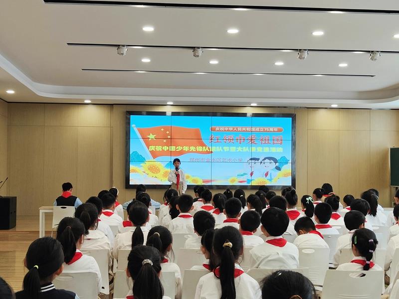 在铿锵有力的出旗曲中,全体师生庄严肃立,少先队员行队礼;伴随着激昂的旋律,队员齐声高唱《中国少年先锋队队歌》,用嘹亮的歌声表达对少先队组织的热爱,展现出新时代少年的蓬勃朝气与积极向上的精神风貌。