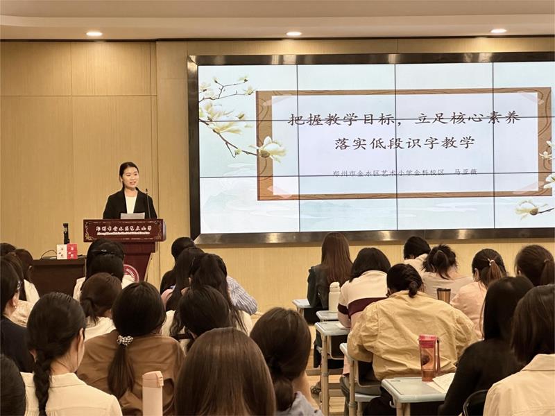 教有道,听有味,研有效。三校区低段教研组长进行了低段教学的经验分享。本部校区陈芳菲老师根据新课标提出的学段要求,从“识字与写字”、“阅读与鉴赏”、“表达与交流”、“梳理与探究”四个方面进行了教学经验分享,图文并茂,结合实例,内容充实,教法扎实。宏康校区白艳文老师主要针对于低年级写话训练进行了“写话润童心,妙笔书文心”的主题汇报,从立足文本、延伸文本到巧妙创新、读写结合,从一份份学生的作品中,让我们感受到孩子在写话训练中获得的成长。金科校区马亚薇老师以“把握教学目标,立足核心素养,落实低段识字教学”为主题进行了经验分享,马老师结合一二年级多种识字教学方法,精彩展示了从理论到落实的转变。