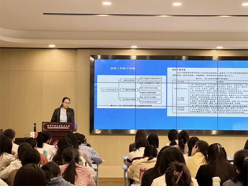 最后,学科发展中心语文学科主管领导教导处主任赵玮霞对本次研讨活动进行了总结。赵主任强调:学校三校区的青年教师较多,希望通过这样的经验分享,能快速提升青年教师的语文教学专业成长。低段语文教学要紧扣课标,将“识字与写字”“阅读与鉴赏”“表达与交流”“梳理与探究”这四方面的要求落实到位,同时要关注学生综合素养的提升,可以结合教材适时开展跨学科的语文综合与实践活动,比如基础性学习任务群范畴的“过一次汉字中国节”,让孩子在生活中积累识字量。同时,赵主任提出,各校区教研组要关注一二年级的非纸笔评价,做好过程性评价和综合性评价,继续探索综合性实践性评价方式,切实提升低段学生语文综合素养。