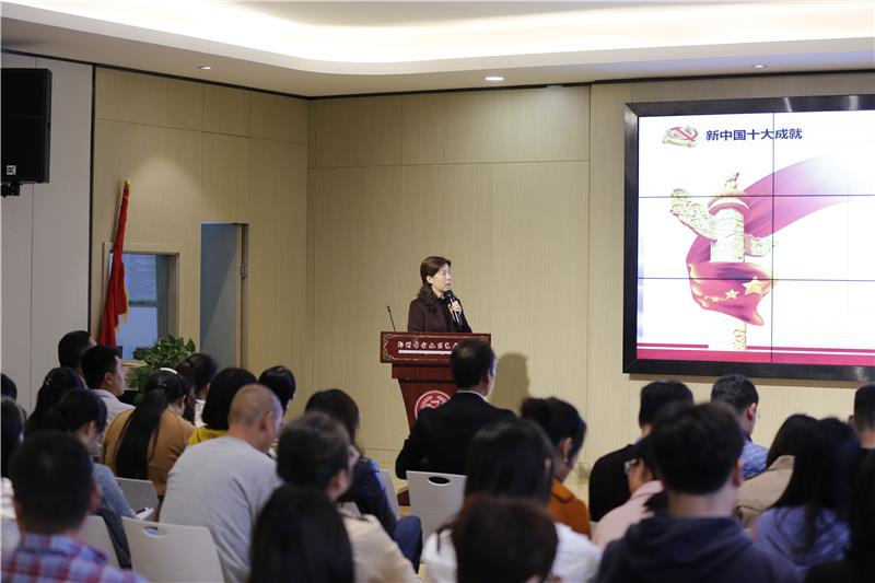 本次党课题目为《点赞新中国 共筑教育梦》,常书记首先带领大家回顾了建国70周年以来,我国发生翻天覆地的变化、取得举世瞩目的成就。以此为切入点,大大激发了党员们无与伦比的自豪感。接着,常书记简洁扼要的介绍了70年来我国所取得的十大成就、新中国五大圆梦工程,透露着浓浓的爱国主义情怀。更是从我们自身的生活说起,从衣食住行四个方面对比了改革开放前后,我们生活方方面面的变化,让大家深深的感受到我们如今幸福生活的来之不易。最后,常书记殷切嘱托全体党员,“新时代属于我们每一个人”,大家一定要坚定理想信念,以攻坚克难的决心砥砺前行,做新时代的“筑梦者”和“奋斗者”,努力为实现伟大“中国梦”尽一份心,添一份力。