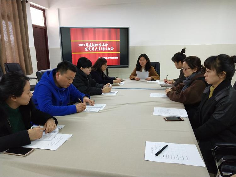 会上,党支部副书记郭莹代表支部班子汇报了一年来的工作情况,根据征集的意见建议,对工作中的不足之处提出整改意见,并向全体党员公布学校党建工作的几项重点内容。随后,各党小组长汇报了党员自查情况和民主评议结果。最后,学校校长赵纪军要求全体党员教师要深入贯彻落实习近平新时代中国特色社会主义思想和党的十九大精神,坚决维护党中央权威和集中统一领导的根本政治责任,加强政治思想和本职工作反思,发挥党员的先锋模范作用,全心全意为学生和学校发展服务,提高教育教学质量,推动学校教育事业向纵深发展。