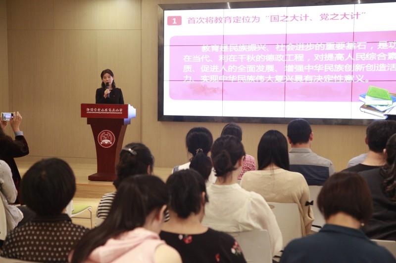 学校党支部书记常秀丽给党员们上了专题党课,带领全体党员教师深入了解我国教育改革发展的“九个坚持”,以及对当前和今后一个时期教育工作作出的重大部署。习近平总书记指出,教育是民族振兴、社会进步的重要基石,是功在当代、利在千秋的德政工程,对提高人民综合素质、促进人的全面发展、增强中华民族创新创造活力、实现中华民族伟大复兴具有决定性意义。教育是国之大计、党之大计。全体党员教师要在工作中充分发挥先锋模范作用,将立德树人融入教育全过程,以更好地担负起传播知识、传播思想、传播真理,塑造灵魂、塑造生命、塑造新人的时代重任。