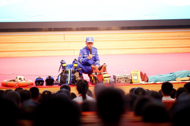 金水区应急蓝天救援队副队长王伟围绕防溺水、心肺复苏、海姆利克急救法等方面,以近年来发生的学生溺亡案例为切入点,通过现场问答、互动等方式,结合平时自己的救援经验,讲述了特殊环境、紧急情况下溺水自救、求救等方式方法,充分激发了学生的学习兴趣和积极性。