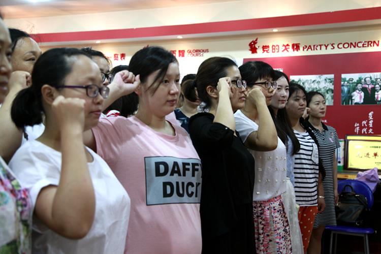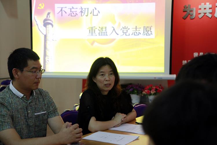 在党支部书记常秀丽的带领下,全体党员教师庄严宣誓:“我志愿加入中国共产党,拥护党的纲领,遵守党的章程……。”句句铿锵有力的誓词,使每一位党员教师再一次接受了心灵的洗礼,进一步坚定了爱党、信党、跟党走的理想信念。