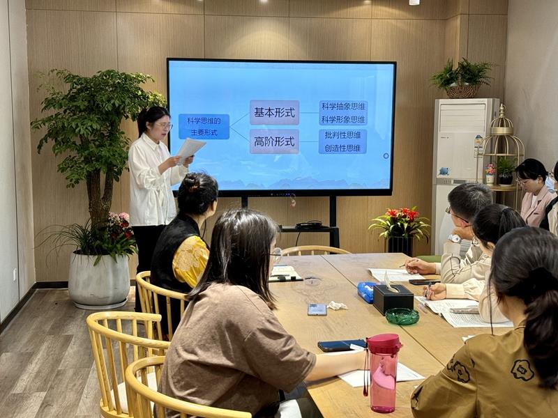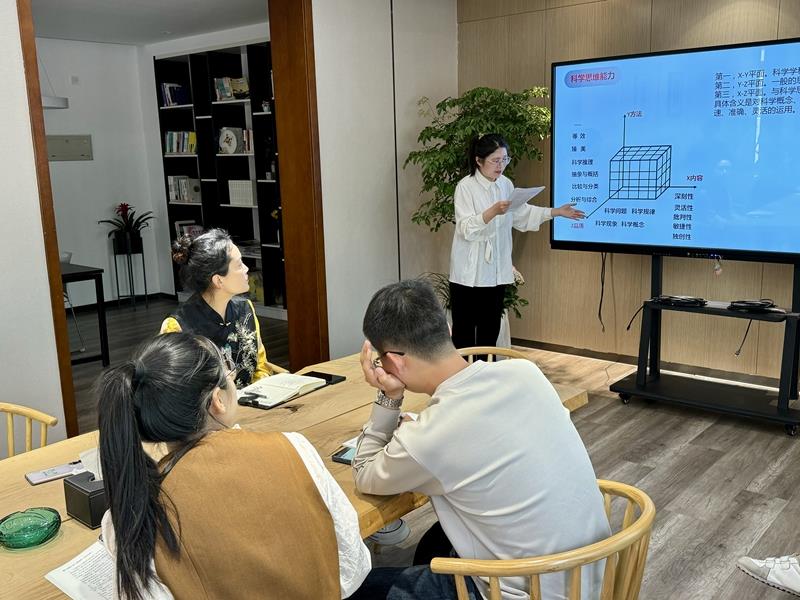 课标研读,实践交响。四月芳菲,温暖向上。4月17日上午,在本部校区的会议室,宗叶老师分享胡卫平教授的理论,强调科学课中实验的重要性,在实验中促进思维的发展,使在场的教师们对科学思维有了更深入的理解,对科学思维的内涵和培养策略有了更加深刻的认识。三校区科学学科负责人徐瑾瑾主任鼓励大家积极探索和实践,共同研讨更加高效的课堂教学策略。