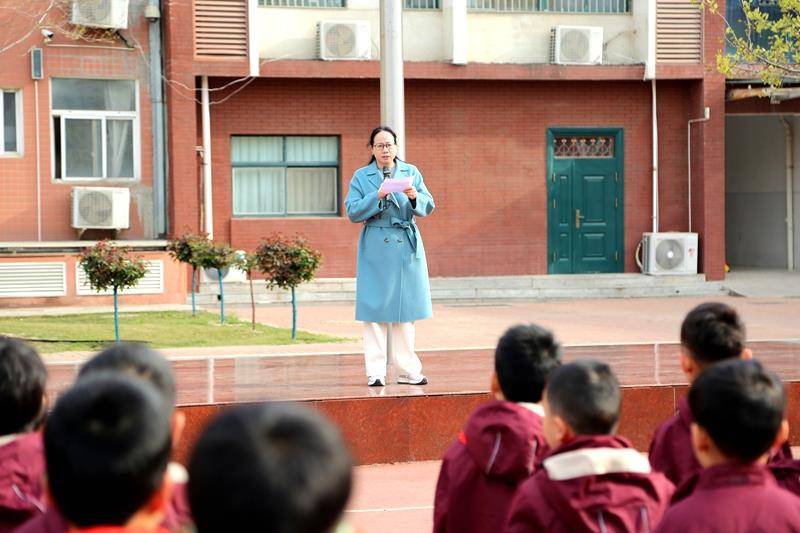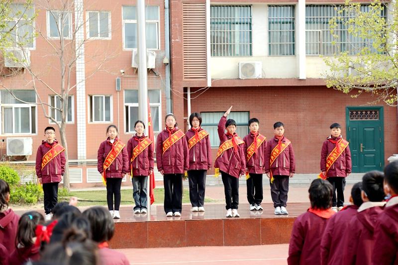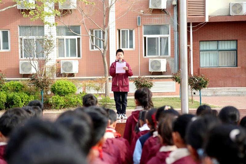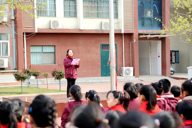 升旗仪式由六八中队学生代表梁聍月同学主持。在激昂的国歌声中,五星红旗冉冉升起,全校师生庄严肃立,向国旗行注目礼,高唱国歌。少先队员以庄严的仪式对话历史,用铿锵的誓言回应时代,以最崇高的敬意向为国家独立、民族解放而英勇献身的先烈们致敬。