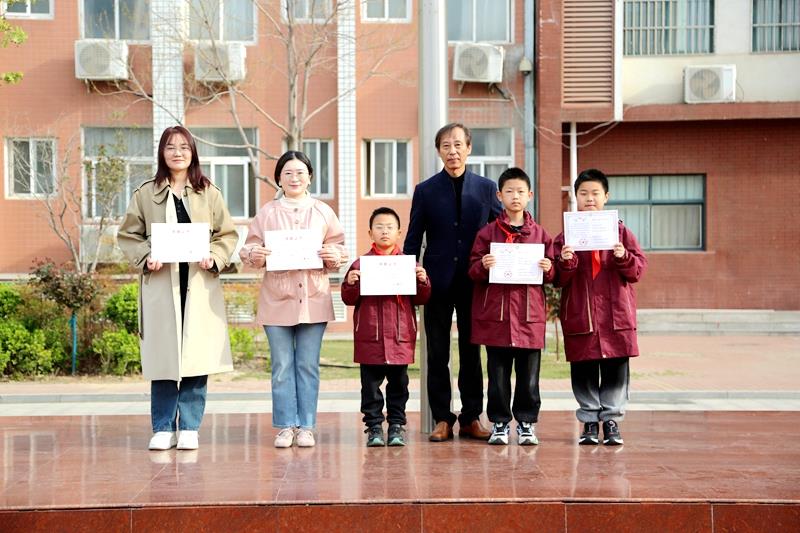 仪式上,学校教导处主任赵玮霞宣读在郑州市中小学环保绘画大赛、郑州市中小学实践性作业设计、金水区中小学单元整体设计、郑州市基础教育精品课中获奖的教师名单;在河南省学生信息素养提升实践活动大赛、郑州市中小学环保绘画大赛中获奖的学生名单。学校校长赵纪军为获奖师生颁发获奖证书。