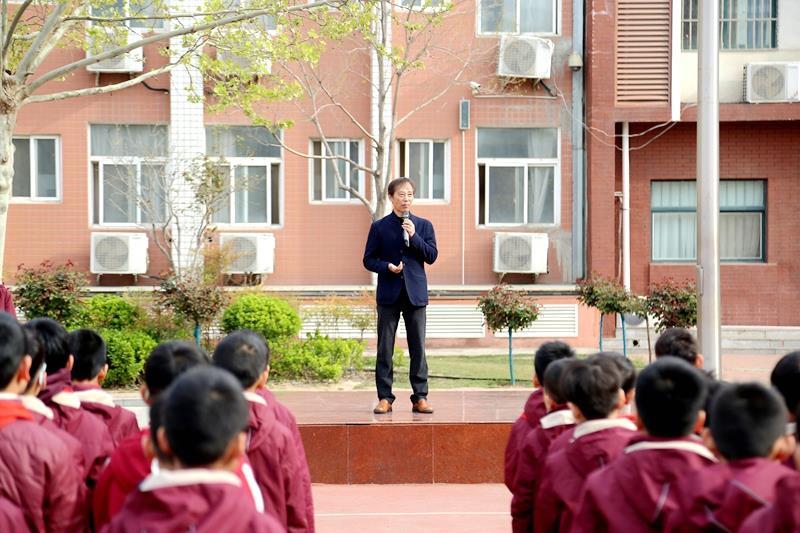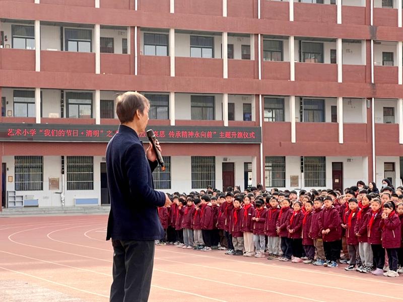 中队辅导员代表张高霞老师做国旗下讲话,她从历史的角度阐述了清明节追思英烈的重要意义,鼓励同学们在缅怀中汲取力量,在传承中砥砺前行,以英烈为榜样,树立远大理想,培养坚韧不拔的意志。