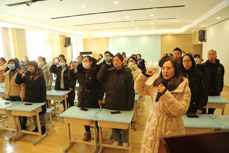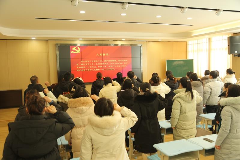 最后,杨丽丽书记带领全体党员教师重温入党誓词。坚定的共产主义信仰,进一步增强了党员教师的责任感和使命感。教师们纷纷表示,要不忘初心、牢记使命,以时不我待的紧迫感和舍我其谁的主体意识,积极投身各项教学工作中!