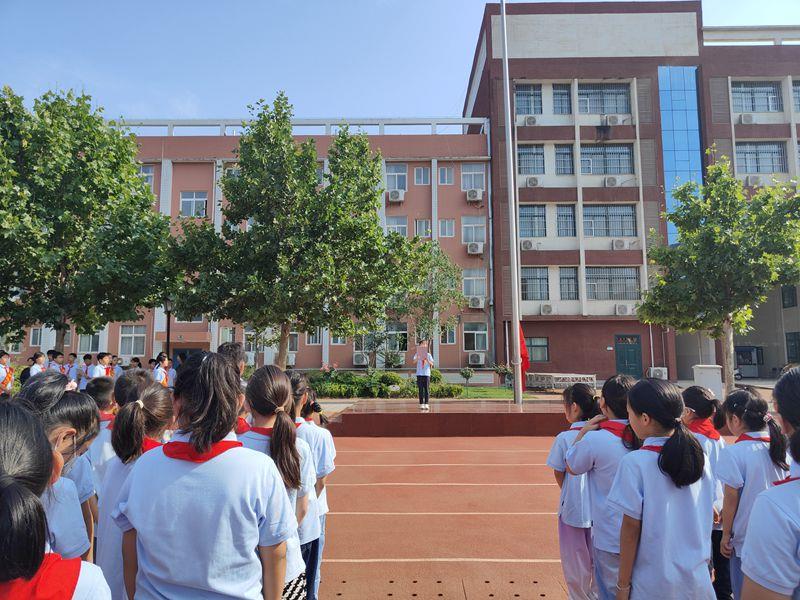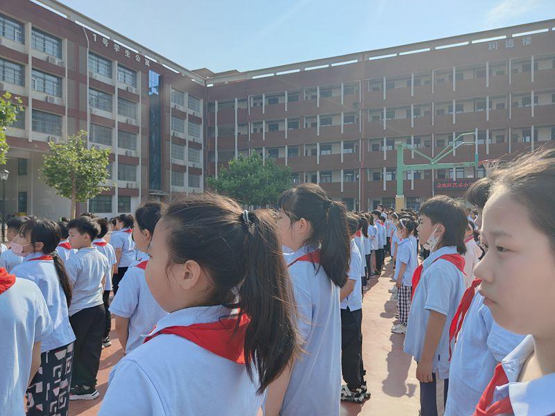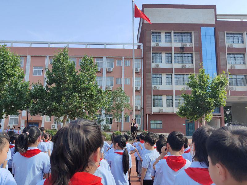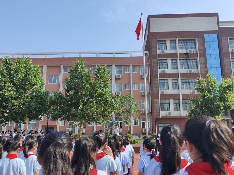 庄严的国歌声中,全体师生凝神注视国旗冉冉升起,五星红旗迎风招展,每一位少先队员的心中都澎湃着无比的激动与自豪。