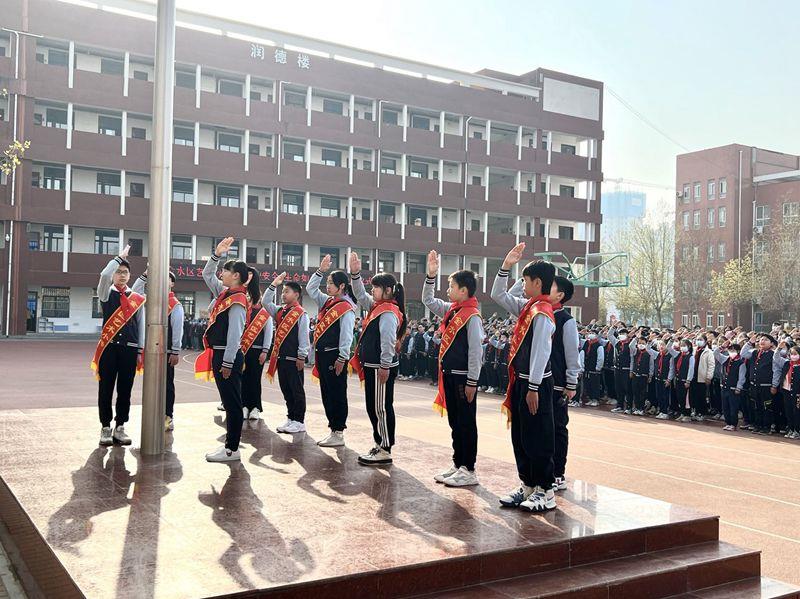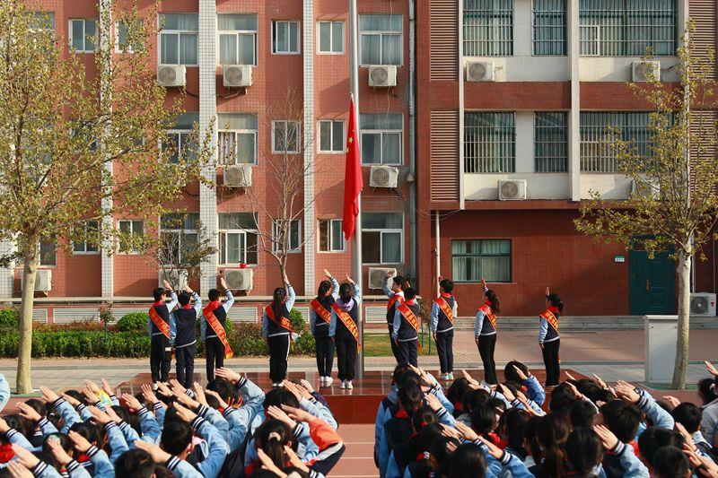 伴随着国歌声,鲜艳的五星红旗冉冉升起,同学们挺胸抬头,庄严肃立,用标准的队礼向国旗致敬。