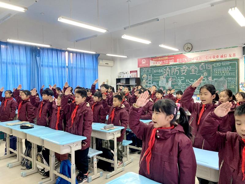 中队辅导员代表许佳琪老师发表讲话,她号召同学们:要从自身做起,从小事做起,让诚信的种子在心中生根发芽;时刻保持一颗诚实的心,做到言行一致、说到做到;学会尊重他人,信守承诺,让诚信成为生活中不可或缺的一部分。