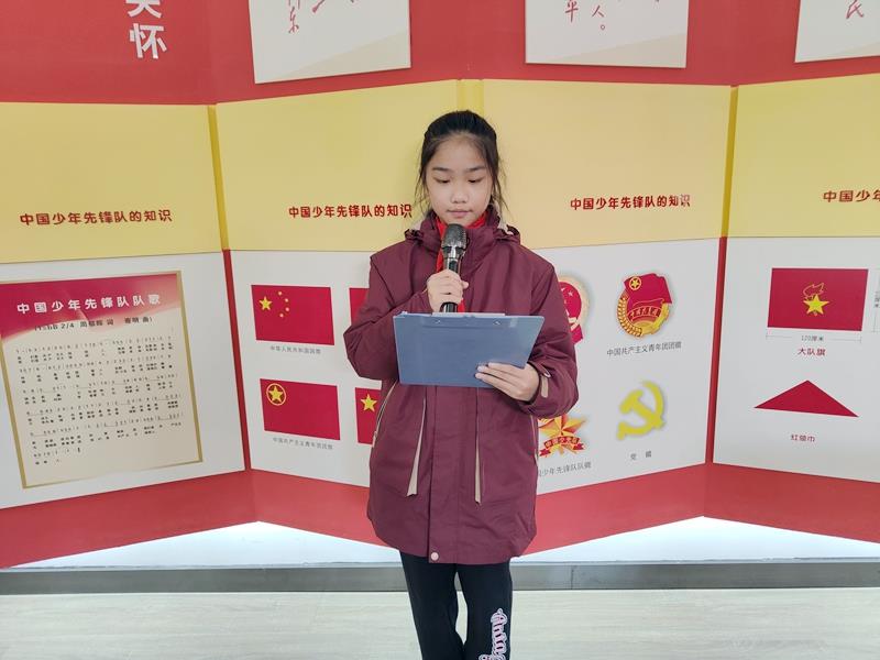 五三中队学生代表丁胜虹同学在国旗下演讲。她通过自身的经历,告诉小伙伴们诚信的重要性,并向向全体队员发出呼吁:从现在起,做一个诚实守信的好孩子,让诚实守信的光芒照亮我们前进的道路!