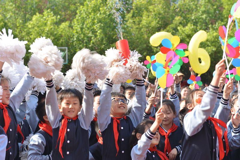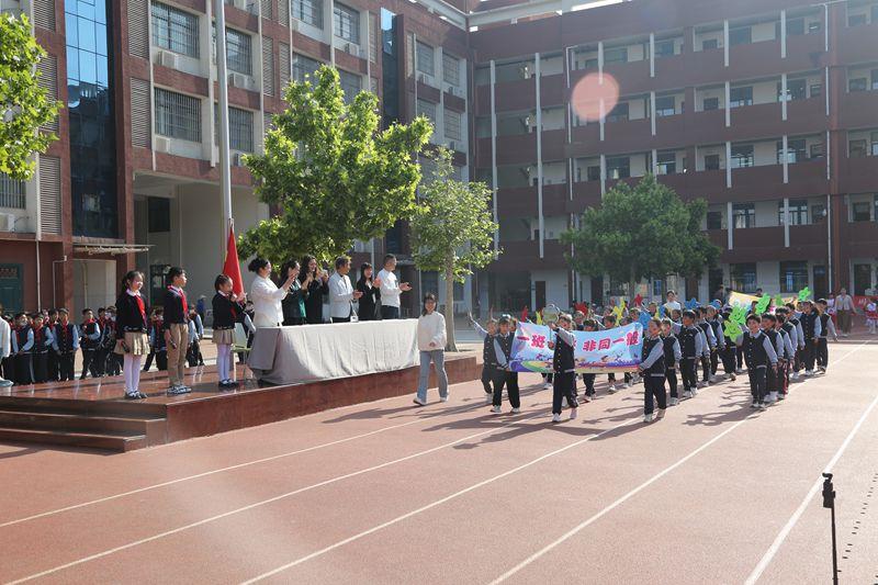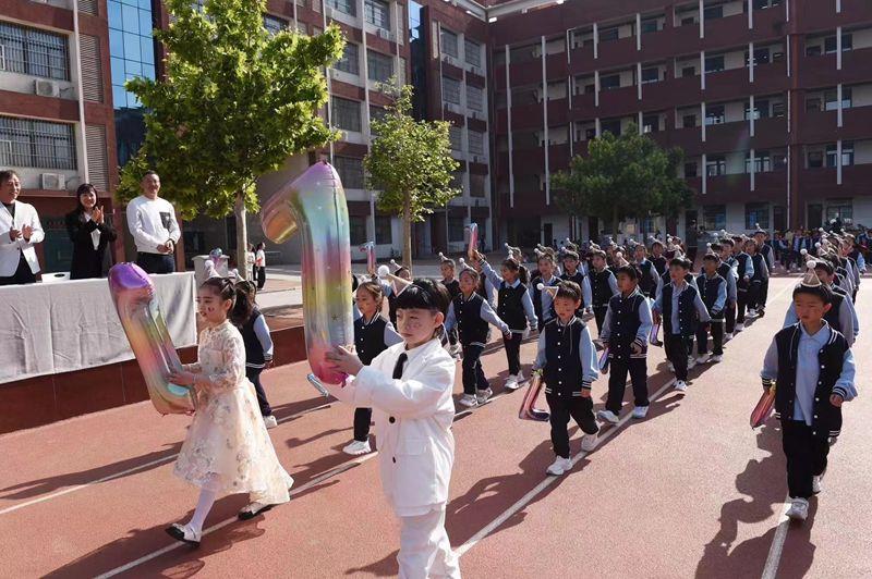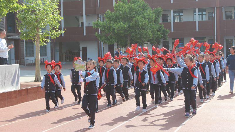 二六班的孩子们脸上洋溢着灿烂的笑容,手持大风车,“开心每一天”的横幅高高举起;二五班在漫天的彩色泡泡中,一边踏步一边高喊着自己方队嘹亮的口号;在家长志愿者团队叮当猫、顽皮豹与同学们的互动下,整个校园似乎都要被这无尽欢乐所淹没……