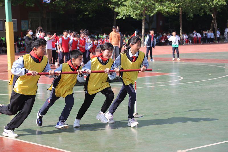 赛场上,班主任悉心指导,鼓舞士气;孩子们龙腾虎跃,奋力拼搏;赛道旁边的呐喊助威更是激情澎湃,整个比赛始终充满了紧张而和谐的气氛。班级啦啦操大课间展示、五六年级的“旋风跑”、三四年级的“赶小猪”、一二年级的“翻山越岭”及首届班级篮球联赛总决赛等项目内容丰富多彩,形式活泼新颖,使得每一名学生都得到了展示和锻炼的机会。