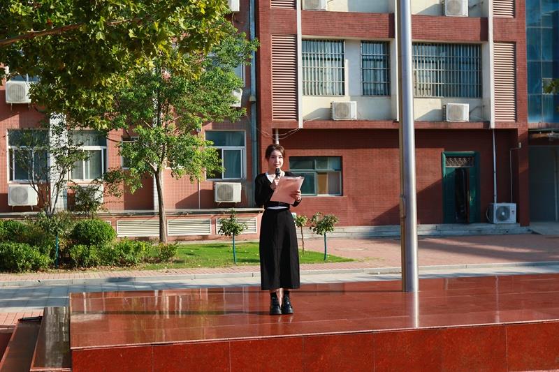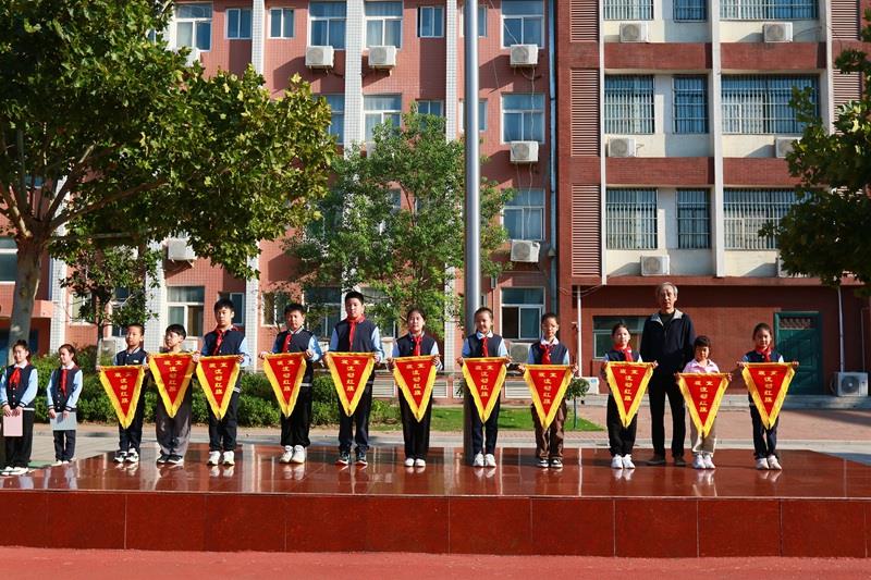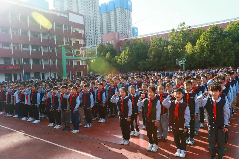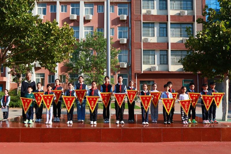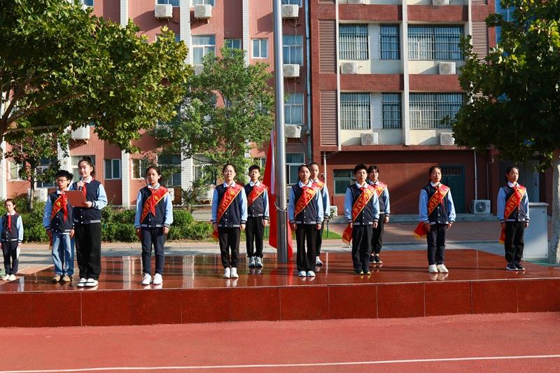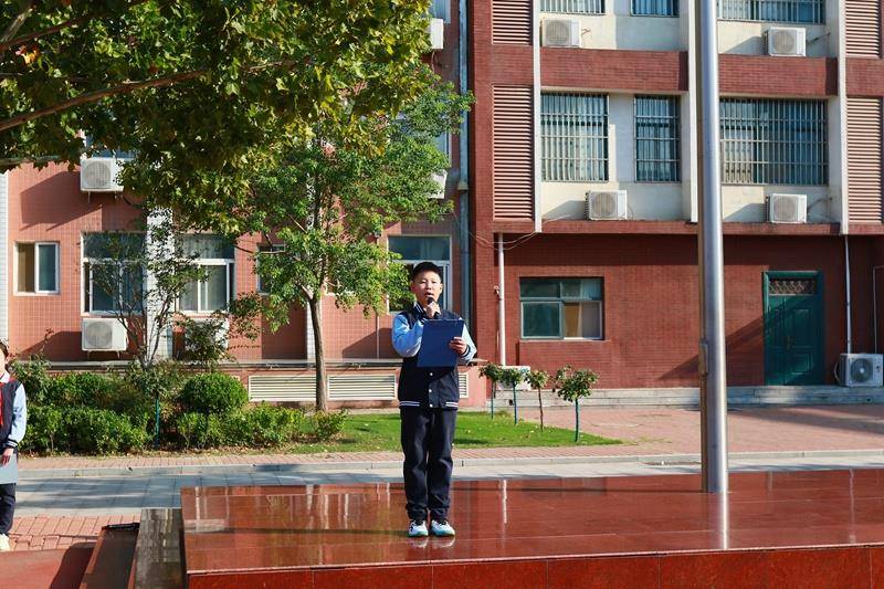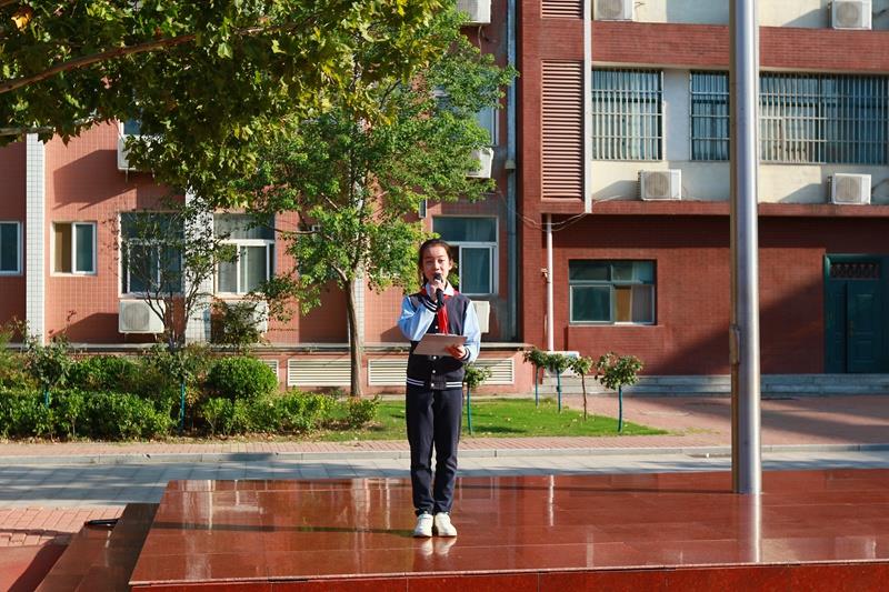 本次升旗仪式由六三中队学生代表吴惜童主持。伴随着嘹亮的国歌声,鲜艳的五星红旗冉冉升起,全体师生庄严肃立,面向国旗行礼,心怀对祖国无限的热爱和崇高的敬意。