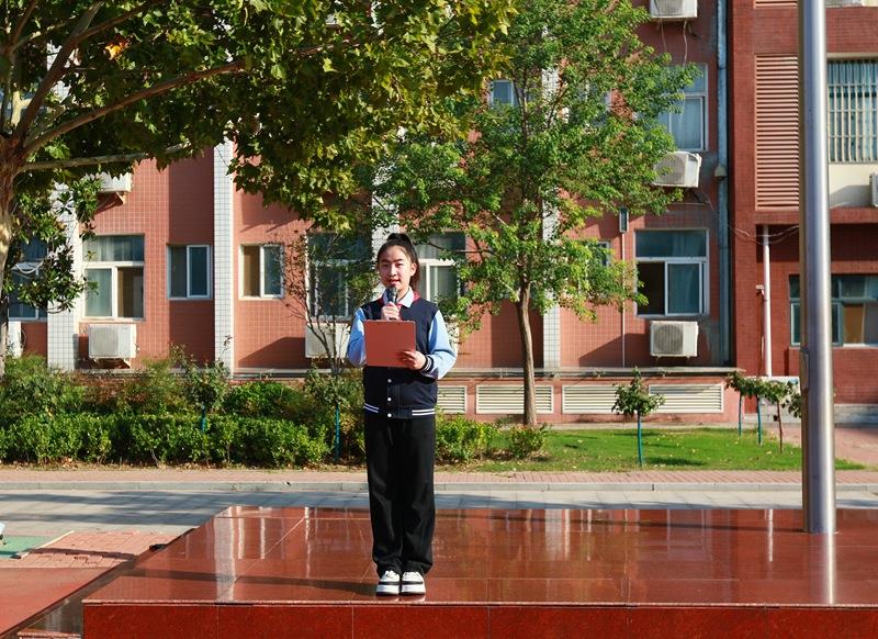 六三中队学生代表李若芯进行国旗下的演讲。她用标准流利的普通话,向同学们宣讲普通话作为国家通用语言的重要性,呼吁小伙伴在日常生活和学习中坚持使用普通话,在个人能力范围内推广普通话,争做新时代的小小推普员,共同营造文明和谐的校园环境。