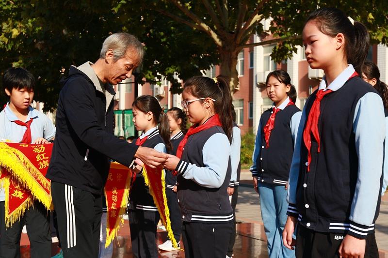 流动红旗是对优秀班级团结进步的肯定,也是老师和同学一起付出努力、付出汗水的见证;是优秀班级荣誉的象征,也是他们共同努力所摘下的丰硕果实。学校党委书记、校长赵纪军为获得流动红旗的班级颁奖。