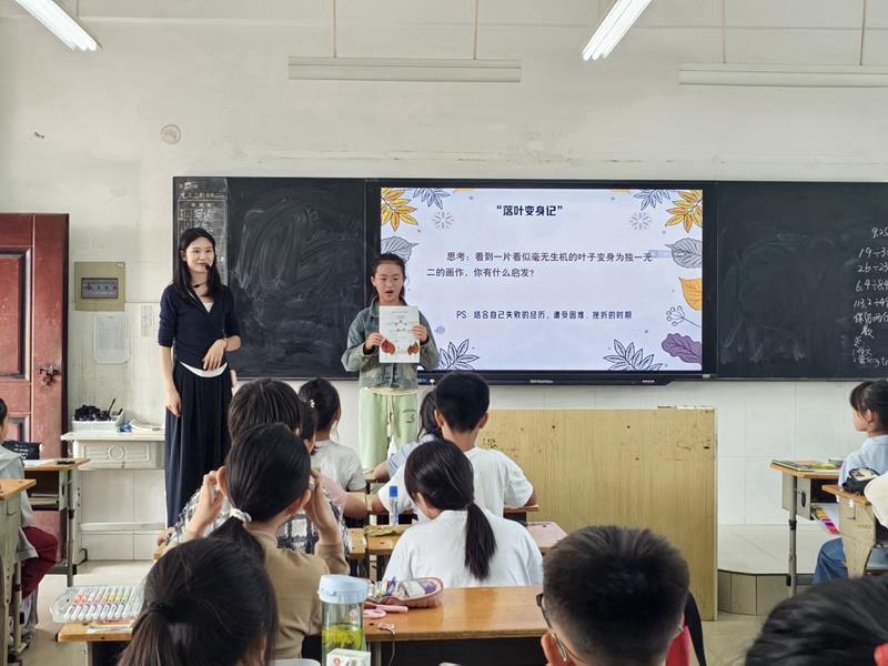 首先,由学校本部校区心理健康教师李欣洋分享了五年级课例——《假如我是一片叶子》。李老师的课堂紧紧围绕教学目标开展,从“遇见落叶”的活动开始,引发学生思考:自己选择的这片落叶可能处于它一生中的什么阶段,假如自己是一片叶子,面对不同的人生阶段,可能又会经历什么呢?从而引发对生命的新思考。同学们发挥自己的想象和创造力,运用自己喜欢的颜色、图案,帮助落叶完成了华丽的“变身”,且在创作中,多视角地去感受生命,体会不同阶段生命的价值。