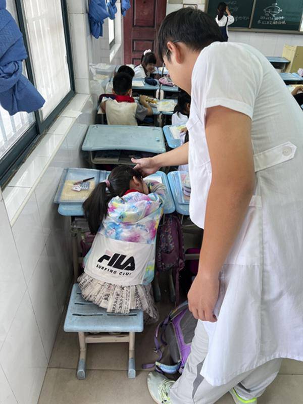 学校第一时间封锁食堂和发生呕吐现象的班级,安排并通知食堂封存可能引起中毒的食物和饮用水,对学生呕吐物采样保存,组织班级其他学生远离现场,对发生呕吐现象班级进行消杀,并由班主任安抚学生情绪,并向家长说明情况,转移其他学生的同时安排心理老师对该班其他学生进行心理疏导,进一步掌握孩子的健康状况。办公室对该起食品中毒事件进行收集、整理、分析,避免事态进一步扩大。
