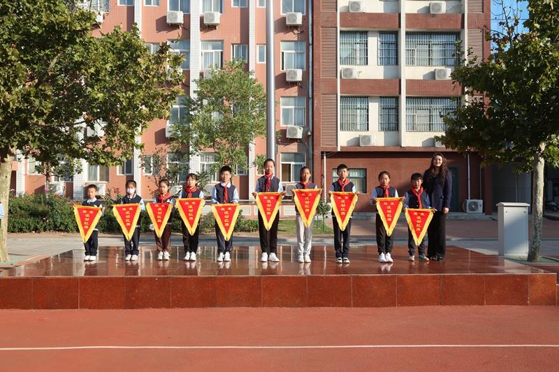 少成若天性,习惯成自然。流动红旗评比不仅是一种荣誉的象征,更是一种肯定与激励。通过对各班的纪律、卫生、大课间、寝室等方面进行检查和评比,大队委公布获得流动红旗的班级,学校副书记郭莹为获奖班级颁发流动红旗。