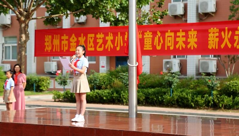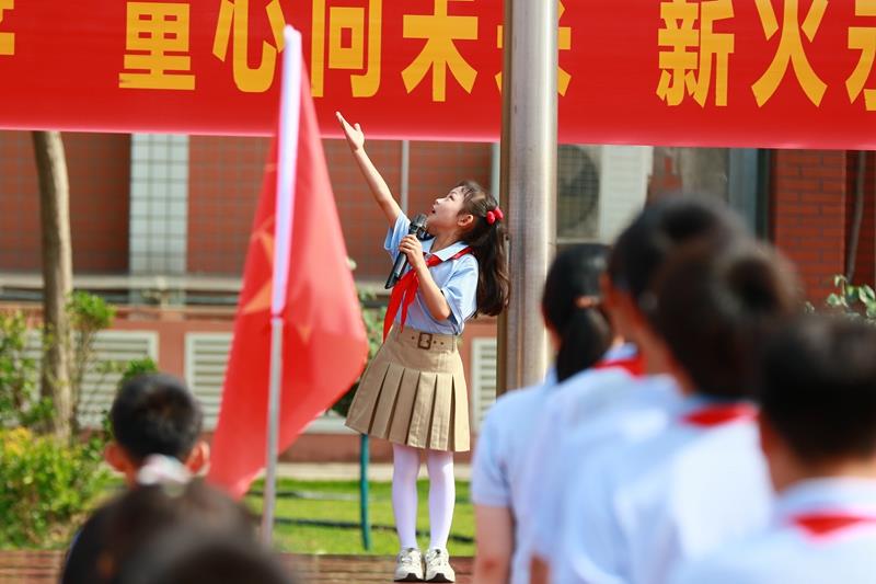 一年级新队员李梓欣同学用她稚嫩的声音代表刚刚入队的120名新队员发言,骄傲地表达了对少先队组织的热爱和对未来的憧憬,决心要用实际行动,为班级添彩、为学校争光。