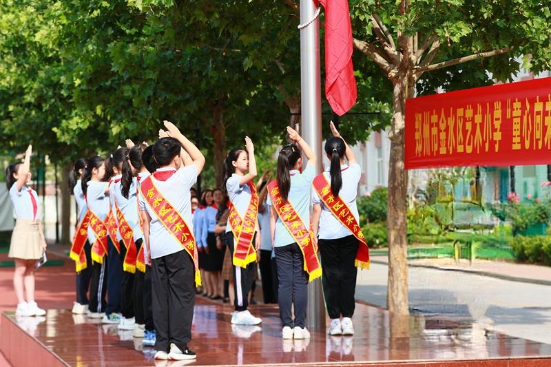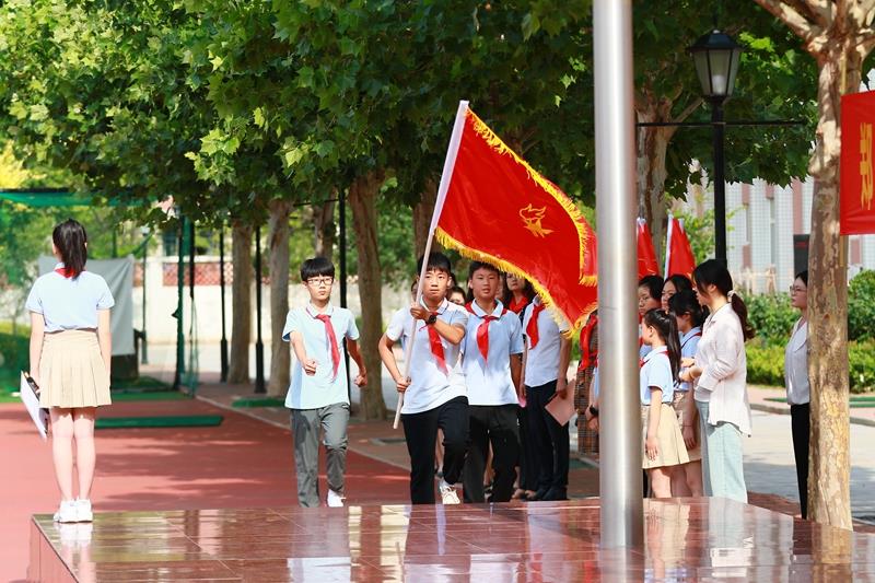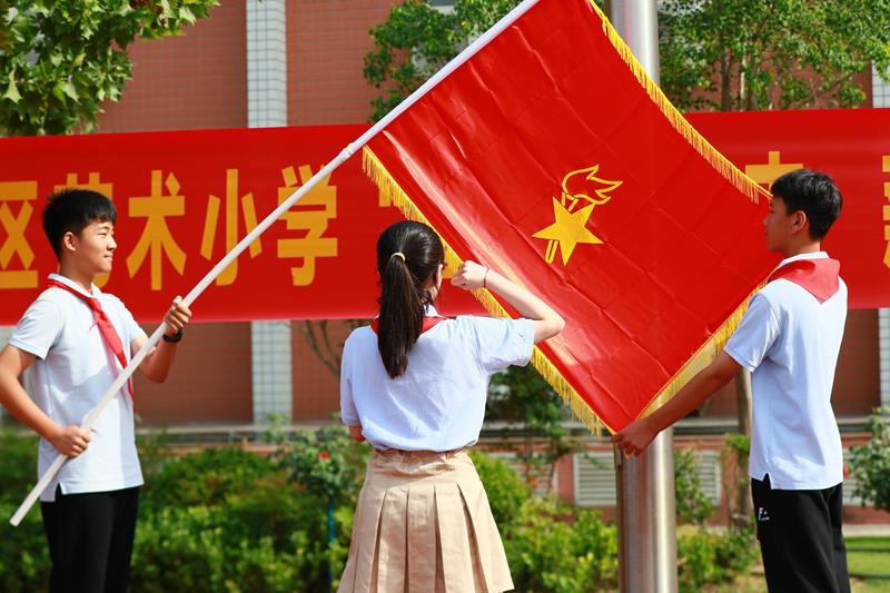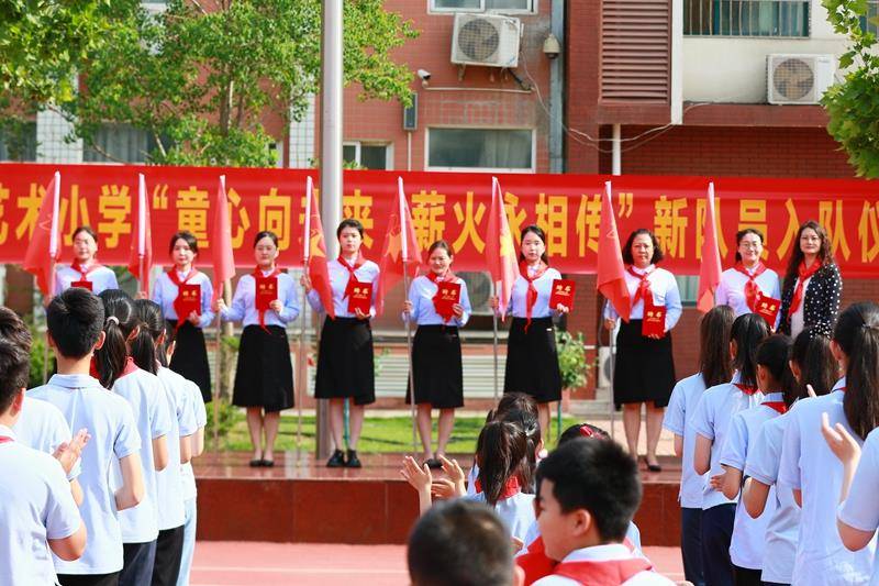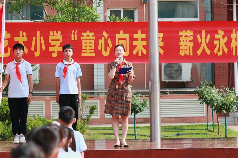“时刻准备着!”在鲜艳的队旗下,德育主任海霞带领全体少先队员郑重呼号;入队仪式在《退旗曲》中圆满结束。