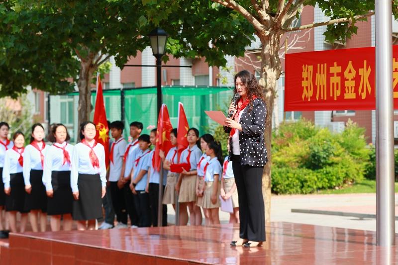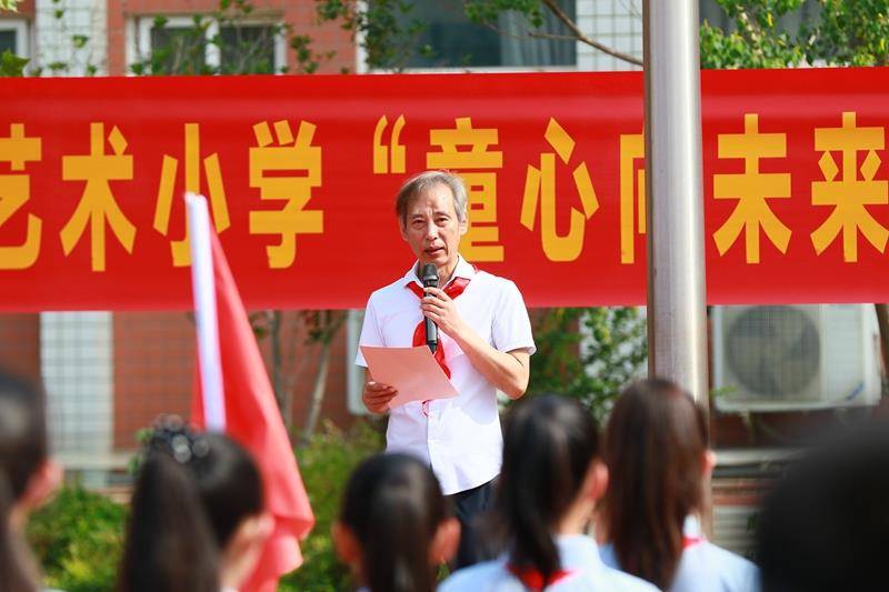 学校党总支书记、校长赵纪军深情寄语,他向新建中队、辅导员老师、少先队员们表示热烈祝贺,希望队员在星星火炬旗帜的指引下,在老师和家长的关爱中,刻苦学习知识,坚定理想信念,磨砺坚强意志,锻炼强健体魄,茁壮成长、向善向上,长大后为祖国的繁荣富强做出应有的贡献。