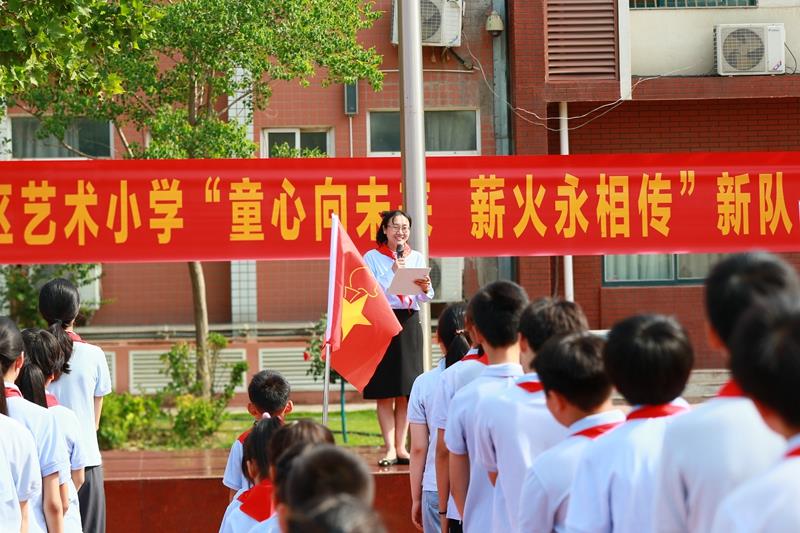中队辅导员陈芳菲老师寄语新队员:要继承和发扬少先队的优良传统,做学校小榜样,做爱党爱国好少年,让星星火炬代代相传。