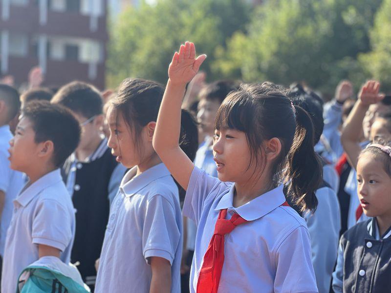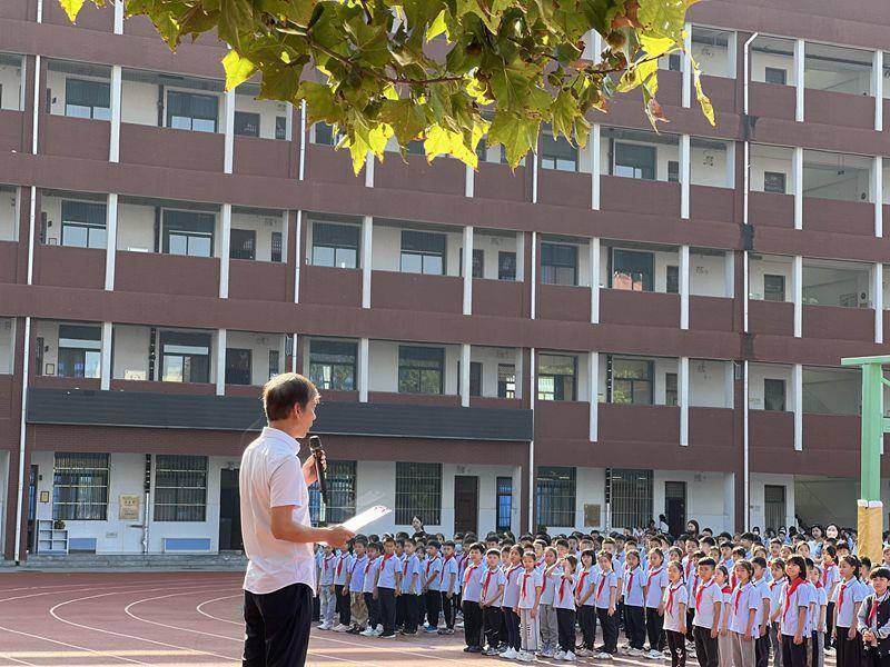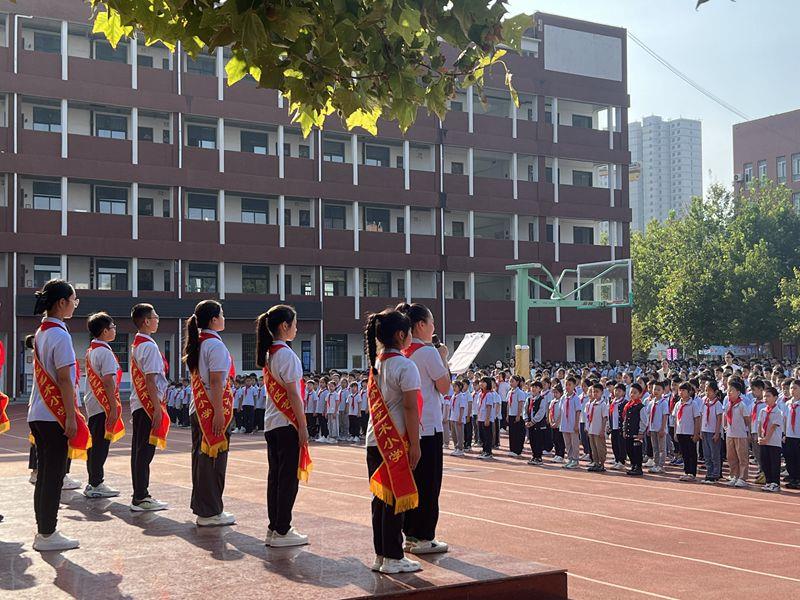 学校党总支书记、校长赵纪军为仪式致辞,他强调:作为一名优秀的小学生,首先要树立主人翁意识,其次做一个积极向上的新时代好少年,希望每一位老师和同学用实干、拼搏进取的精神去创造学校的持续发展。