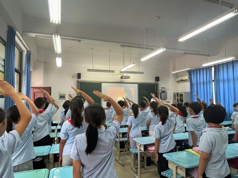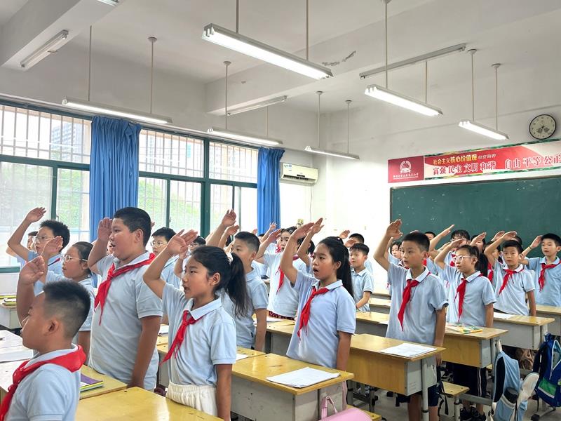 学校大队委李星阅同学主持活动。她带领队员们宣誓,用铿锵有力的誓言表达出深深的爱国情怀。学校六一班学生代表郭钇辰同学进行国旗下演讲,表达出对新学期的无限向往和顽强拼搏的决心,郑重承诺将严格自律、规范言行,在学习中坚定理想和目标,努力成长为全面发展的新时代好少年,不负学校和老师的精心培育。