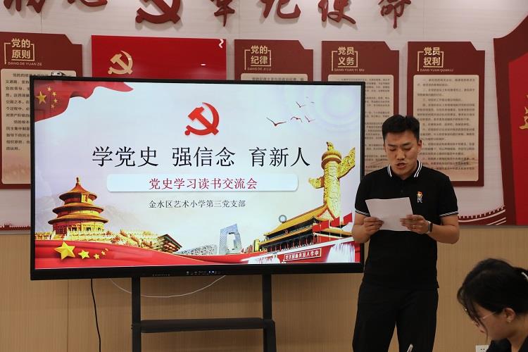 为迎接建党100周年,加强党员干部党性修养,坚定理想信念,进一步推进党史学习教育深入开展,5月25日,金水区汇彩网金科校区开展了“学党史 强信念 育新人”党史学习读书分享会。